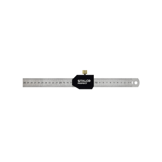 Ner. plieno liniuotė su žym. bloku 300mm