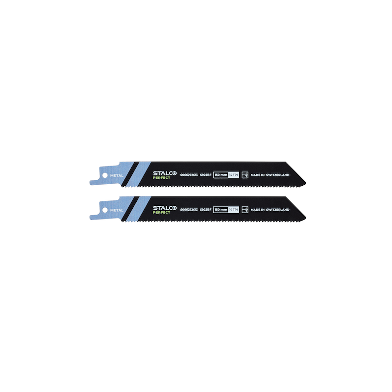 Tērauda un krāsaino metālu griešanai. Elastīgs bimetāla asmens. Ilgs kalpošanas laiks. Smalks zobu solis nodrošina optimālu sagatavju griešanu ar biezumu no 1,5 līdz 4 mm. Kopējais garums: 150 mm. Maksimālais griešanas biezums: 100 mm. Zobu solis: 2 mm. Zobu skaits: 14 TPI. Ražots Šveicē. Divi zāģa asmeņi iepakojumā.